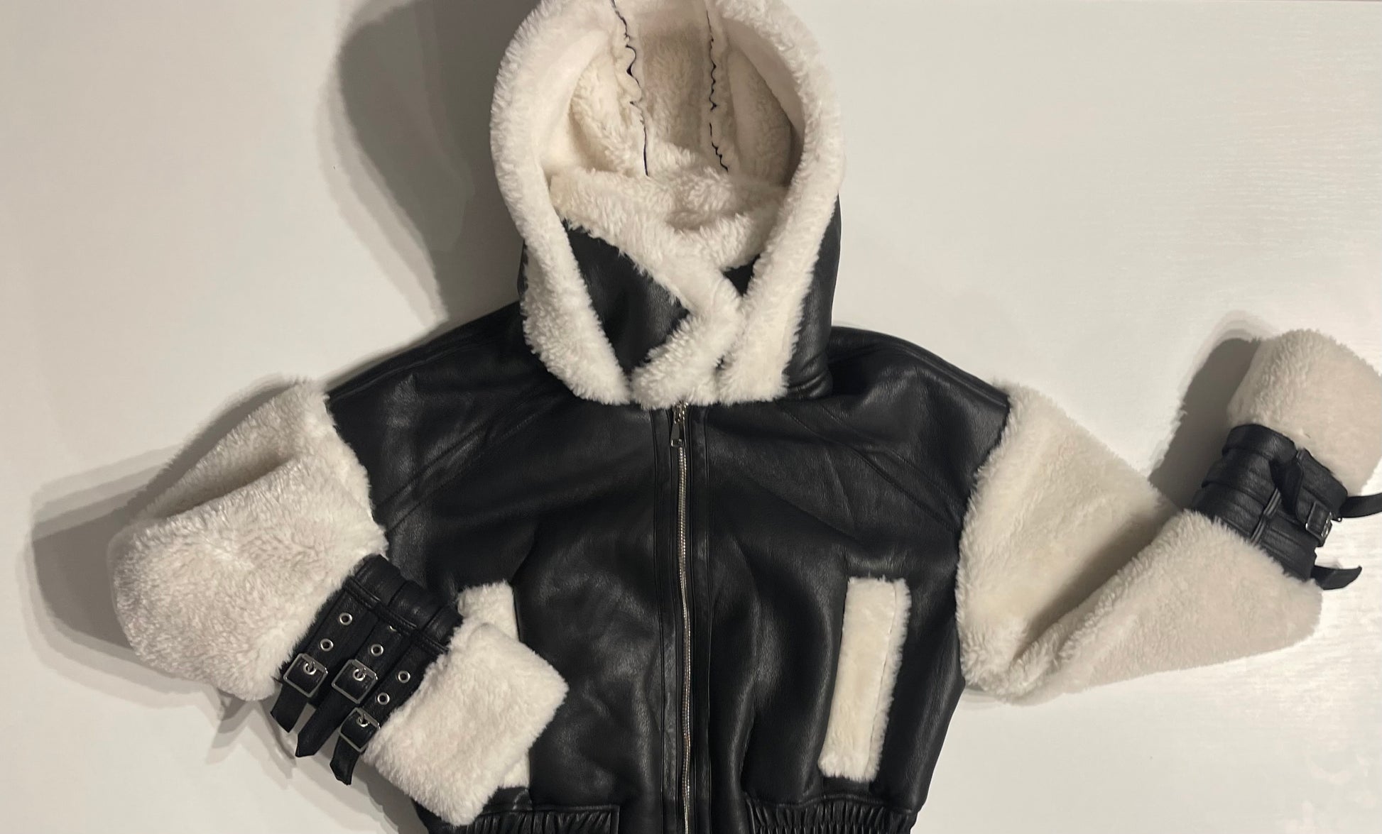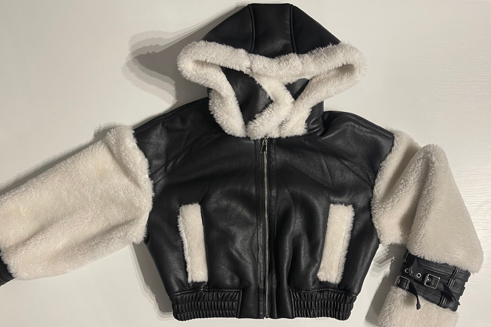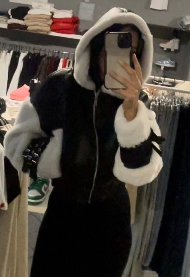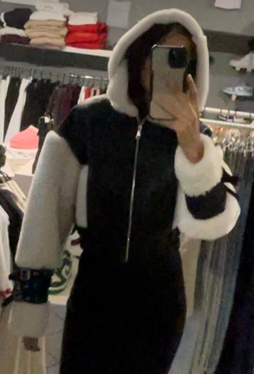 Dámska koženková bunda s kožušinou - čierna