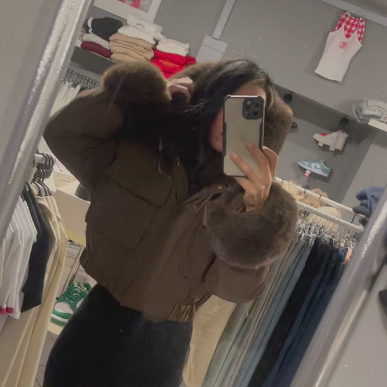 Dámska zimná bombera s kožušinkou - hnedá